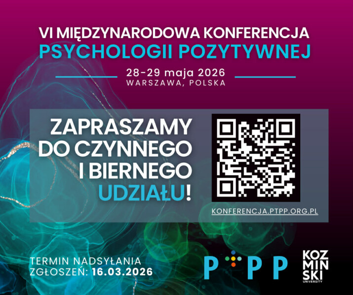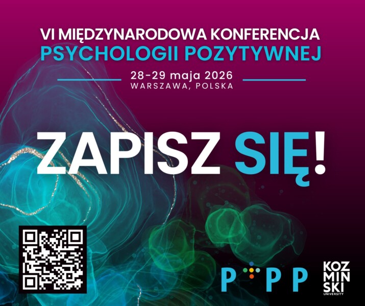 Serdecznie Zapraszamy na VI Międzynarodową Konferencję Psychologii Pozytywnej w Warszawie Szanowni Państwo, serdecznie zapraszamy do udziału w VI Międzynarodowej Konferencji Psychologii Pozytywnej, która odbędzie się w dniach 28–29 maja 2026 roku w Warszawie, na terenie Akademii Leona Koźmińskiego. W konferencji wezmą udział wybitni specjaliści z zakresu psychologii pozytywnej z całego świata, którzy podczas wykładów i warsztatów podzielą się najnowszą wiedzą, wynikami badań oraz doświadczeniami praktycznymi. Dla kogo? Konferencja skierowana jest do: psychologów badaczy praktyków zainteresowanych projektami z obszaru pozytywnej organizacji, pozytywnej edukacji, dobrostanu, rozwoju osobistego oraz zdrowia psychicznego Zapraszamy do wymiany doświadczeń i inspirującej dyskusji w międzynarodowym gronie. Po wszystkie informację dotyczące zapisów, prelegentów,…